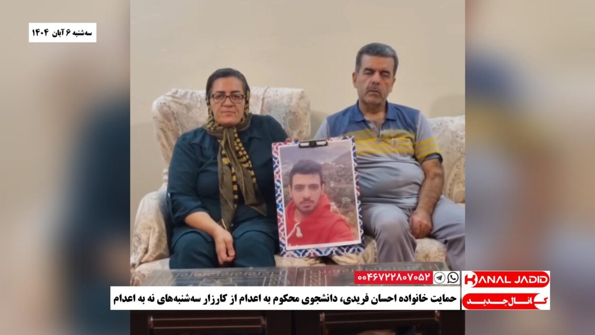 کلیپ روز اکتبر 29, 2025 Aghil حمایت خانواده احسان فریدی، دانشجوی محکوم به اعدام از کارزار سهشنبههای نه به اعدام